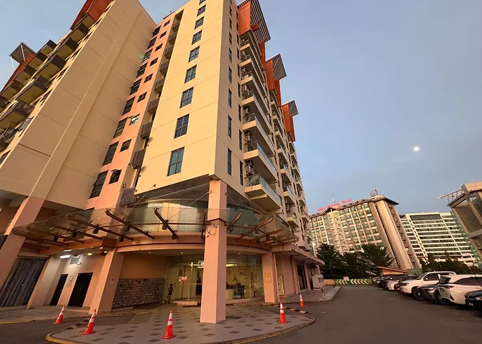 Located a 17-minute walk from the Mamutik Island, Nervalogy24 Suites Scsps Ming Kota Kinabalu features a swimming pool with a bar.